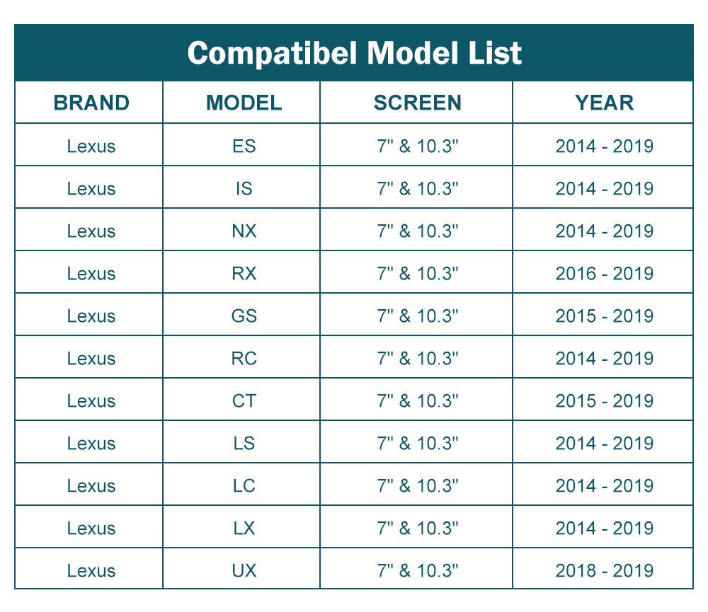 • 100% Compatible With Lexus ES/NX/UX/RX 2014-2019